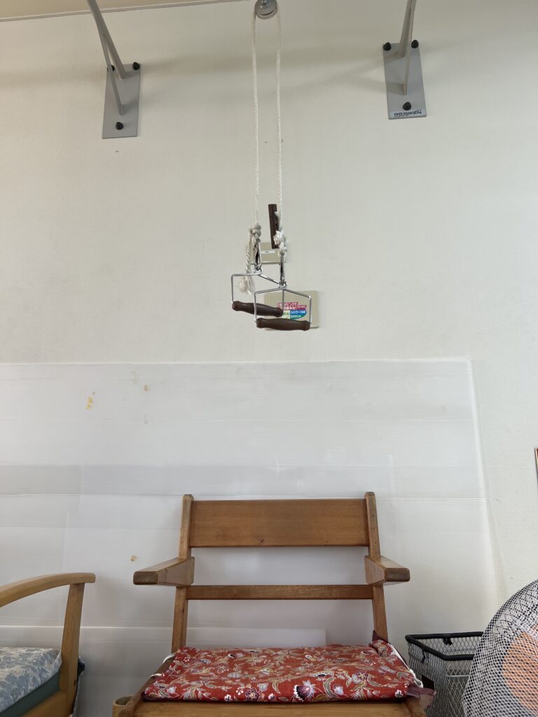 「腕が上がらないから、頑張るわ~(*´▽`*)」などなど、器具を利用して運動したり