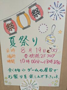 記録的な暑さが続いており、体感的には「真夏」の様ではありますが、暦の上では「秋」ですね♪ 9月に入りましたので、杏樹苑の玄関飾りをチェンジいたしました♪ ご入居の皆さまの作品「十五夜」です♪ 皆様には、残暑に負けず玄関か […]
