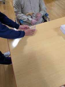 中学生、午前中はご入居者と「体操クラブ」に参加し、皆様に飲み物を用意しました♪