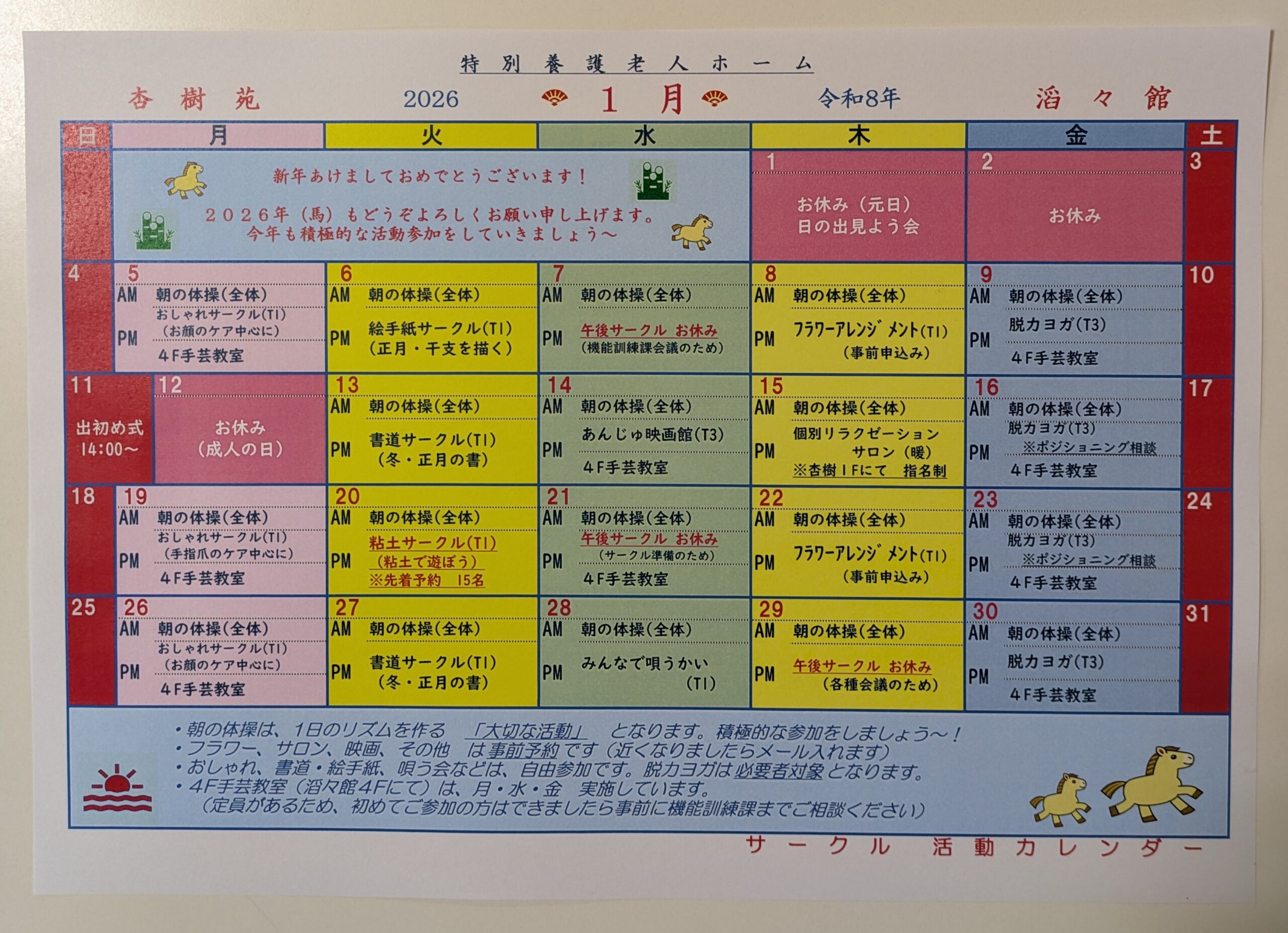 来年1月の特別養護老人ホーム杏樹苑/杏樹苑滔々館のイベントカレンダーです♪