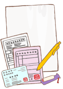 - お持ち頂く物は、入居希望される方の各保険証類、及び印鑑(ご本人、ご家族、後見人、代理人)となります。